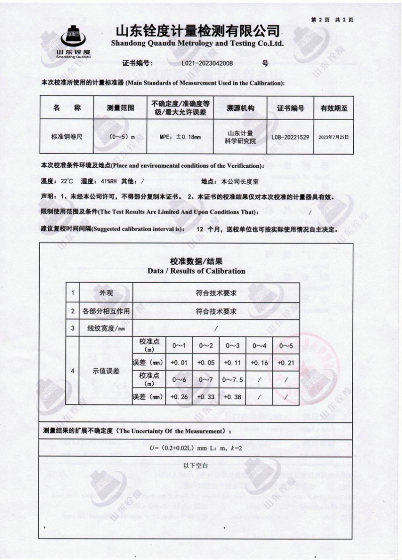 檢測(cè)儀器報(bào)告證書(shū):鋼卷尺長(zhǎng)度堅(jiān)定報(bào)告